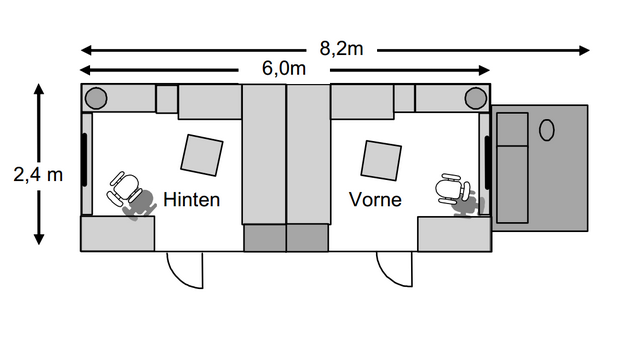 2 getrennte Aufenthaltsräume für Darsteller mit jeweils eigenem Eingang. Die neueste Zentralgeregelte Truma-Heizung mit integriertem Boiler sorgt an kalten Tagen für wohlige Wärme und warmes Wasser ohne das lästige Gasflaschen wechseln, mit Diesel aus dem Fahrzeugtank, an warmen Tagen hat jede Lounge ihre eigene KlimaAnlage.